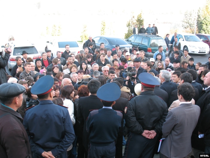 Демонстрация протеста перед акиматом Алматы. 22 октября 2008 года.