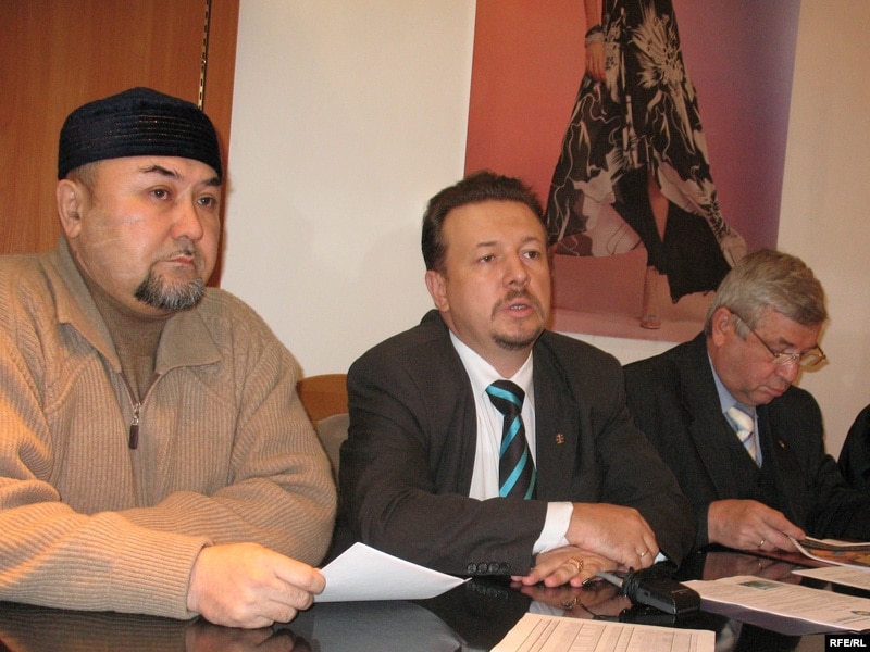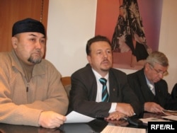 Сембек Нургулов, председатель комитета предпринимателей сферы услуг Алматы, Василий Резван, президент Союза защиты предпринимателей и собственников, Борис Гузев, лицензированный оценщик. Алматы, 3 ноября 2008 года.