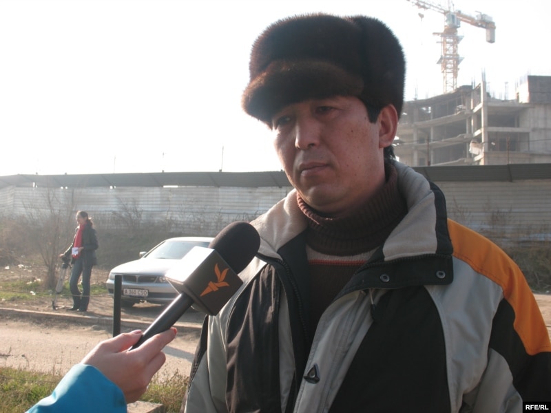 Корреспонденты радио Азаттык спросили по телефону у Даулета Жумабекова, чего он хочет добиться своей акцией. И вот что он ответил нам с 50-метровой высоты башенного крана:
