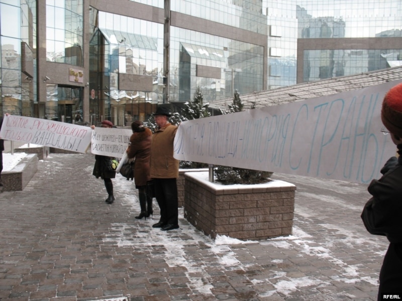Лидеры умеренной оппозиции организовали пикет и провели переговоры с главой частной компании, которая критикуется за срыв противоречивого проекта, уничтожившего первозданный вид Площади Республики в Алматы.