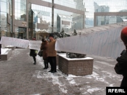 Пикет перед офисом строительной компании "Базис-А". Алматы, 22 декабря 2008 года.