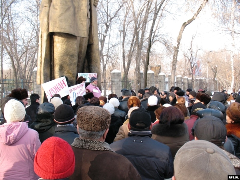 Митинг протеста требует снять остроту жилищного кризиса. Алматы, 12 января 2009 года.