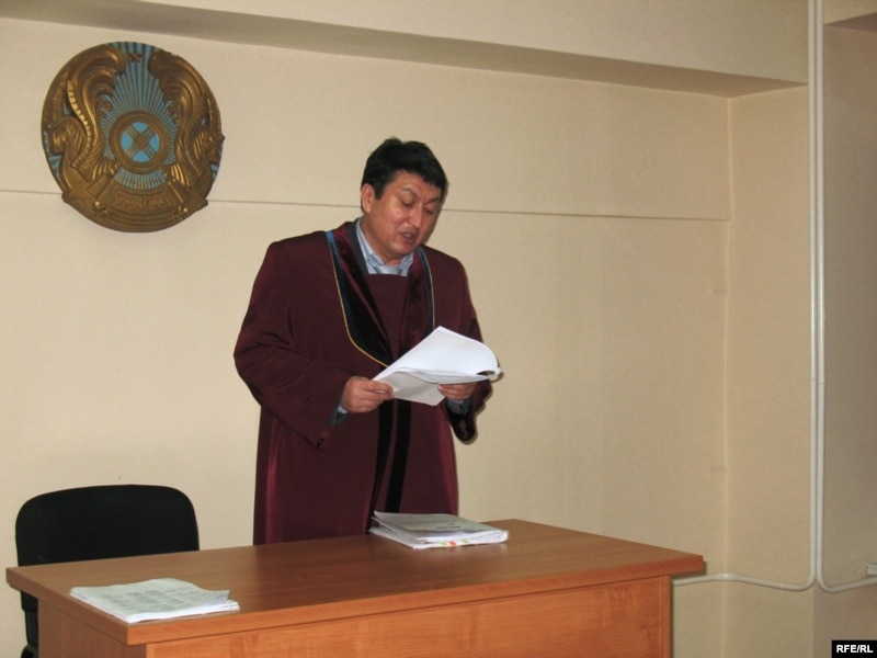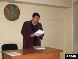 Судья Руслан Сулейманов выносит приговор газете "Тасжарган"  и ее журналисту. Алматы, 16 января 2009 года.