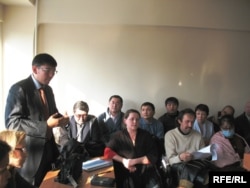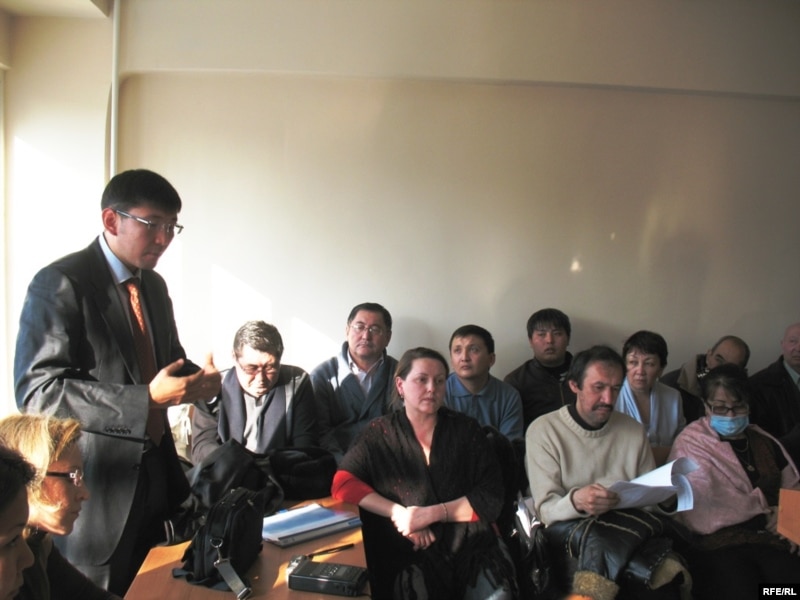 Оппозиционый журналист Алмас Кушербаев выступает на суде против него и газеты "Тасжарган". Алматы, 16 января 2009 года.