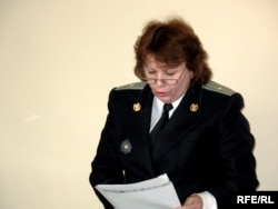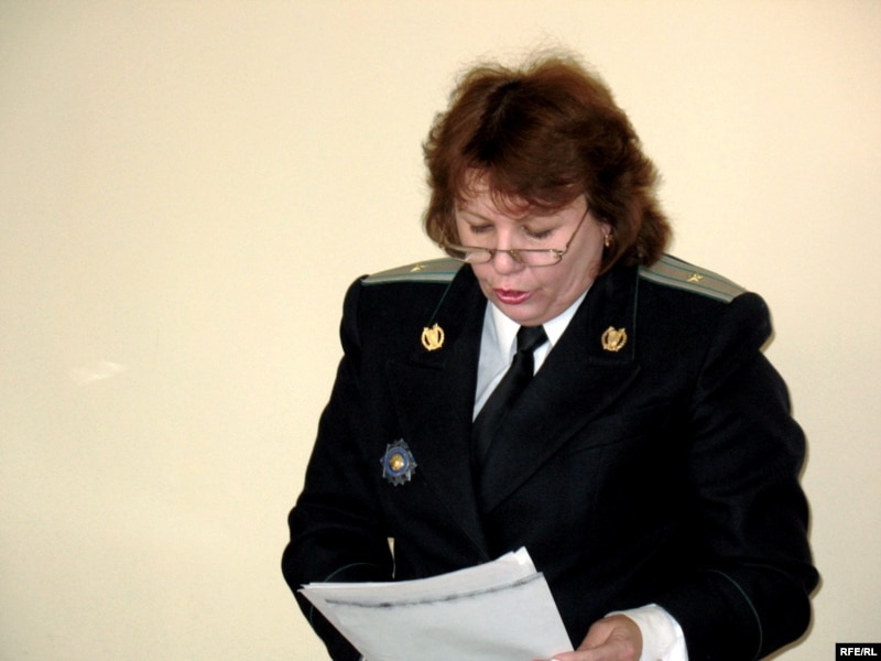 Прокурор Галина Губченко выступает на суде против газеты "Тасжарган" и ее журналиста. Алматы, 16 января 2009 года.