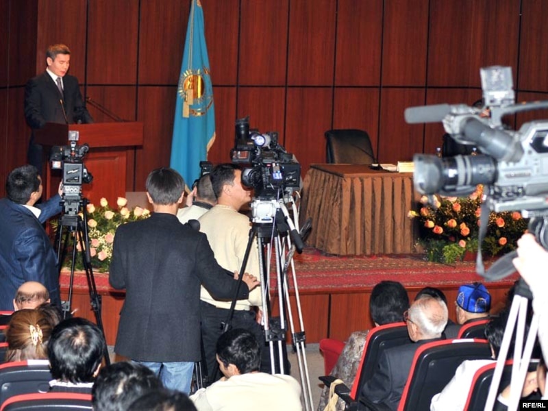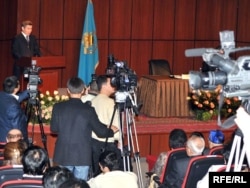 Аким области Бергей Рыскалиев выступает с годовым отчетом. Атырау, 11 февраля 2009 года.