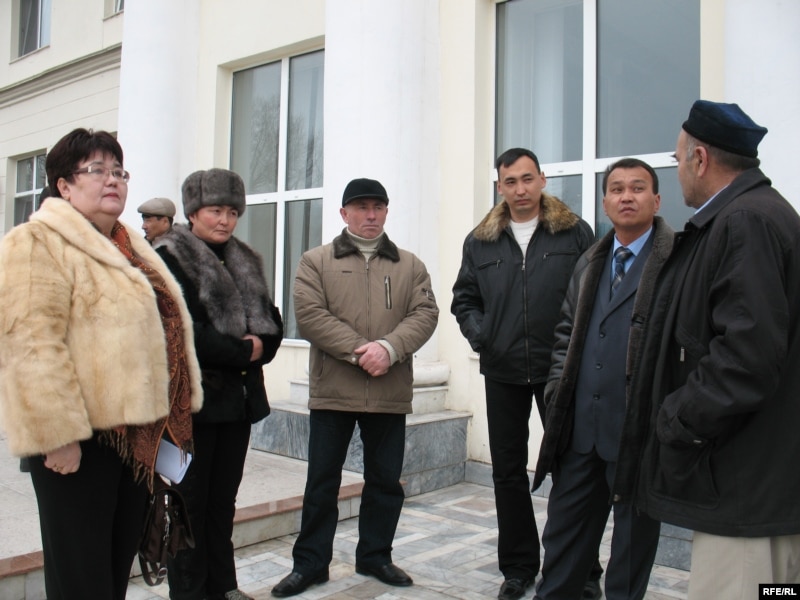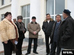 Группа бизнесменов из Южного Казахстана пытается добиться аудиенции в столичном офисе финансовой полиции. Астана, 27 марта 2009 года.