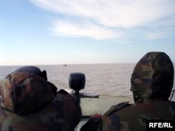 В лодке во время рейда "водной" полиции. Каспийское море.