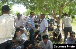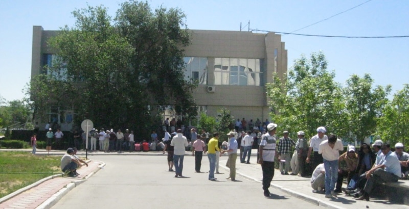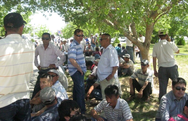 Нефтяники пикетируют акимат Мангистауской области. Актау, 2 июня 2011 года.