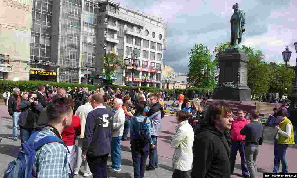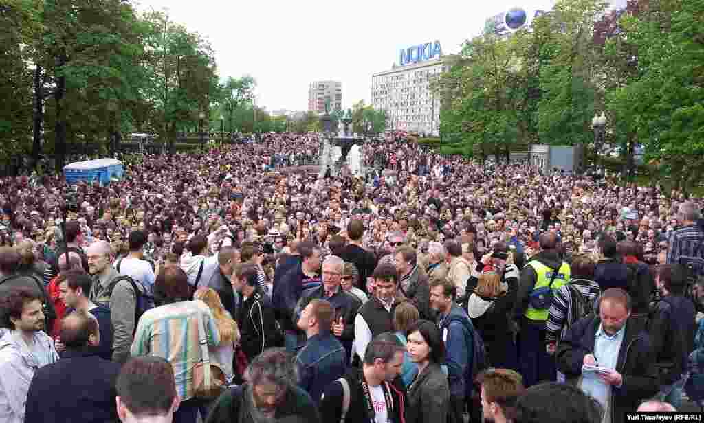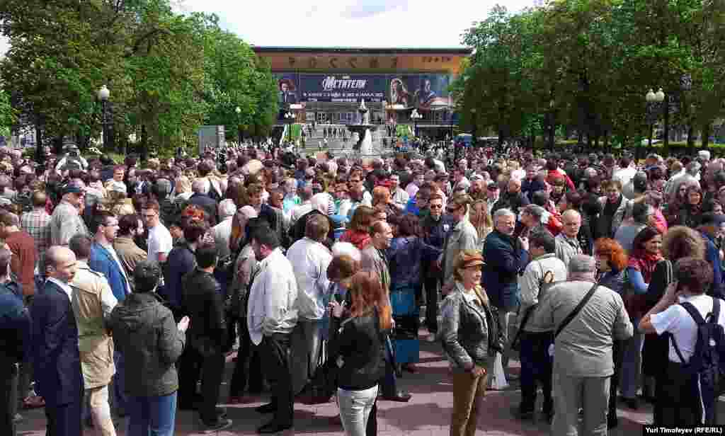 Литераторы и музыканты России провели акцию протеста «Контрольная прогулка», прошли шествием от Пушкинской площади до Чистопрудного бульвара. 13 мая 2012 года.