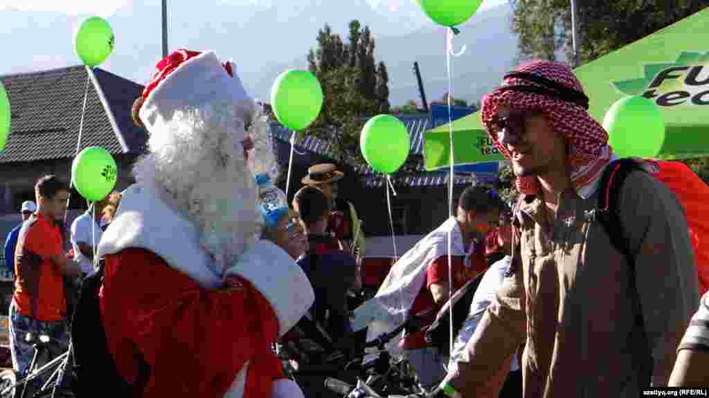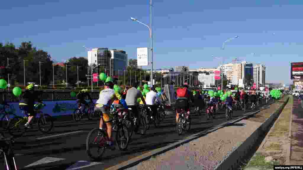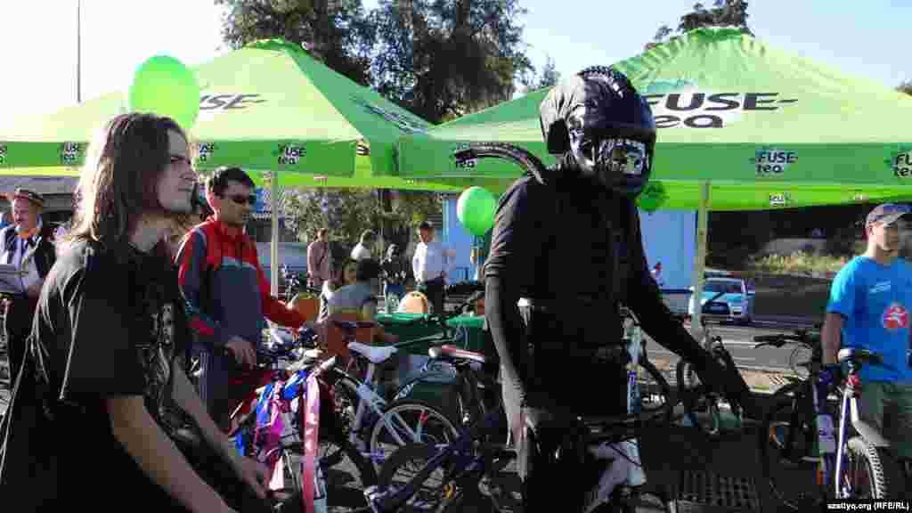 Костюмированный велопробег стартовал в Алматы на проспекте Аль-Фараби и завершился на площади "Астана". По официальной информации, в этом велопараде приняли участие более тысячи горожан. Алматы, 7 сентября 2014 года.