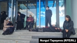 «Положение народа тяжелое. Люди живут в нищете. У многих по восемь-девять кредитов. Поэтому пусть спишут кредиты. Мы принесли сто тысяч заявлений от населения, пусть их рассмотрят», — сказала одна из женщин, лежащая на ступени.