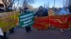 Ольга Смирнова сообщила, что пришла на первый в жизни пикет, зашив карманы пальто. Свои требования она написала на казахском и русском языках.