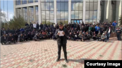 «С 1 апреля наши трудовые договоры прекратили своё действие, и мы пополняем ряды безработных в Жанаозене», — говорит работающий стропальщиком Сергей Кеменов на видео, распространённом днём во вторник.