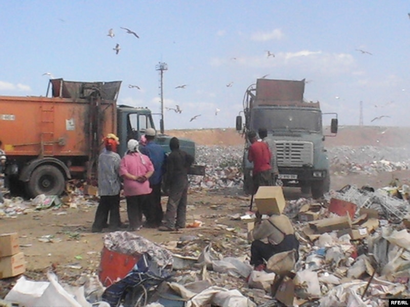 - Из интерната я сбегала: били часто. Среднее образование так и не получила, никто меня из органов опеки не искал. Вышла замуж. Сейчас вот на полигоне собираю металлолом, стеклотару. Все добро упаковываем в мешки и на машине вывозим. Недавно здесь целый КамАЗ напитков, сладостей уничтожали, так я утащила коробку соков домой детям. В день имею 100 – 500 тенге [около 0,7 - 3,3 доллара]. Здесь и другие воспитанники детских домов подрабатывают. Я строитель по профессии. Вон сколько безработных. Здесь на полигоне хоть какой-то заработок.