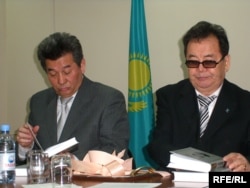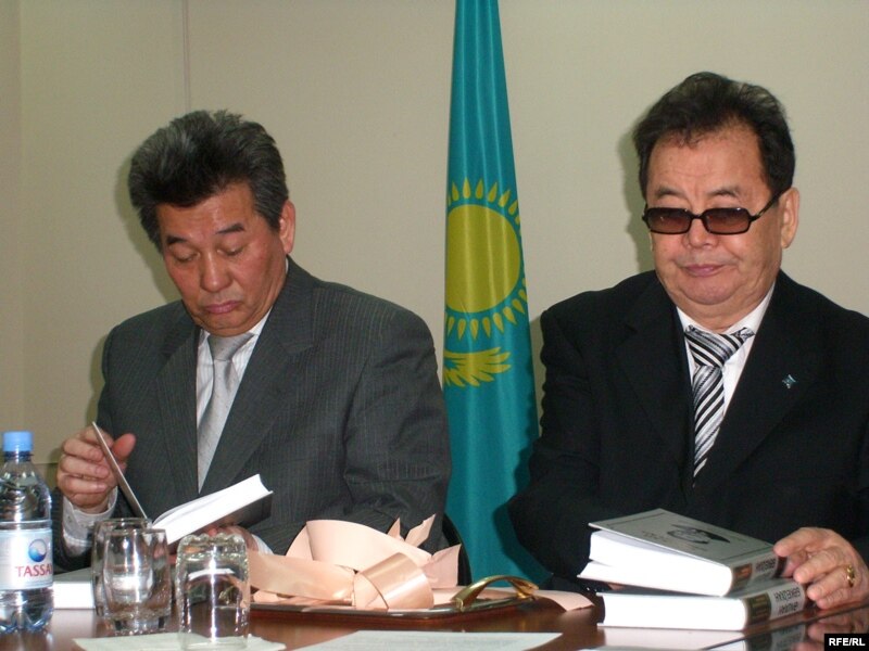 Историк Мамбет Койгельды и архитектор Шота Уалихан на презентации первых трех томов собрания сочинений Алихана Букейхана. Алматы, 22 февраля 2010 года.
