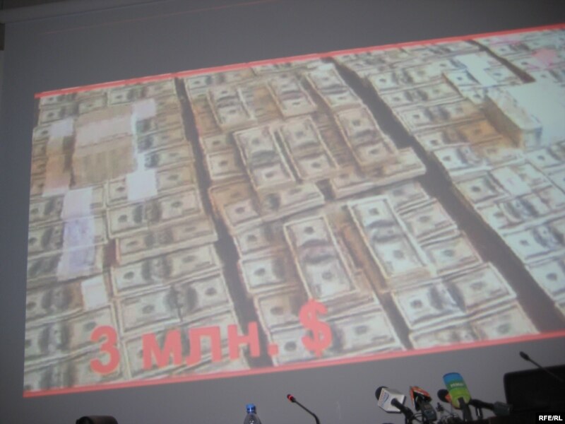 Пачки долларов из якобы «черной кассы» Мухтара Джакишева. Видеосъемка КНБ. Астана, 1 июня 2009 года.