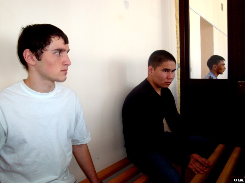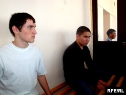 Обвиняемые Роман Вознюк (слева) и Махамбет Шолаков на скамье подсудимых. Атырау, сентябрь 2009 года.