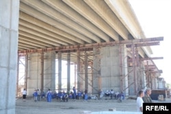 Строящийся мост через Урал, строители которого восемь месяцев не получали зарплату. Атырау, июль 2009 года.