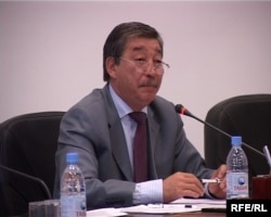 Болат Такенов, заместитель акима Алматинской области, выступает перед участниками акции протеста. Талдыкорган, 19 августа 2009 года.