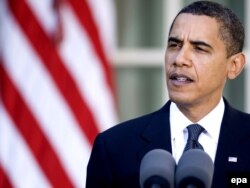 Президент США Барак Обама выступает по случаю присуждения ему Нобелевской премии. Вашингтон, 9 октября 2009 года.