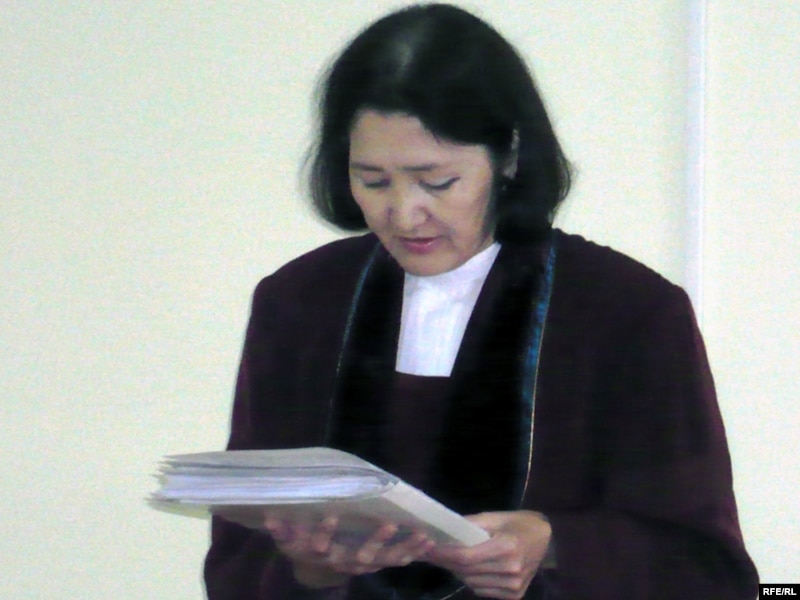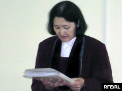 Судья Акгуль Карасаева озвучивает приговор в отношении бывшего советника Бектурганова. Уральск, 13 августа 2009 года.