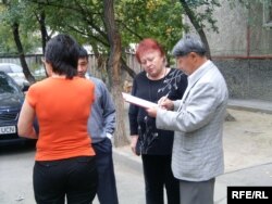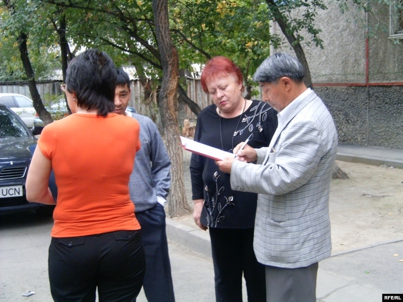 Активисты партии "Азат" собирают подписи против идеи пожизненного президентства Нурсултана Назарбаева. Талдыкорган, сентябрь 2009 года.