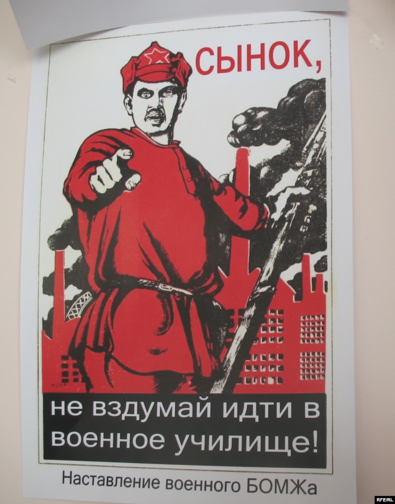 Коллаж, изготовленный бездомными офицерами запаса в знак протеста против коррупции в министерстве обороны. Алматы, 28 октября 2008 года.