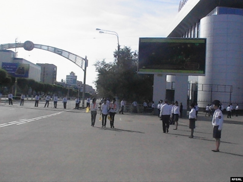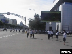 Пройдя через кордон полицейских, корреспондент радио Азаттык оказалась в гуще приглашенных. Приглашенными на празднование Дня Конституции оказались студенты и учителя. Их было несколько сотен.