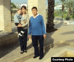 Мальчик Дихан Торгаев и родители Галия Торгаева и Махамбет Торгаев несколько недель спустя после удачной операции. Тель-Авив, 22 января 2010 года.