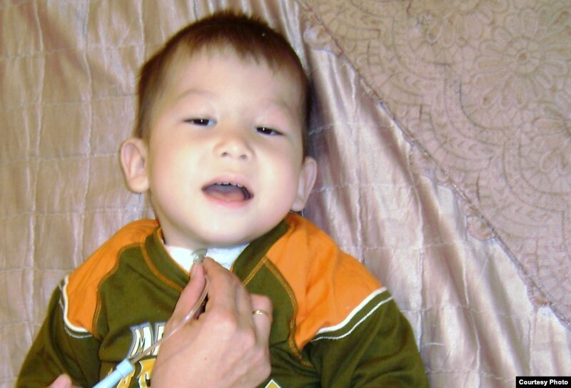 Двухлетний Дихан Торгаев, страдал от врожденного порока развития бронхолегочной системы - трахеобронхомаляции, паралича голосовых связок. Фото до хирургической операции в Израиле.