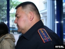 Капитан казахской полиции обеспечивает порядок в коридоре суда во время процесса над оппозиционными политиками. Алматы, 2 мая 2010 года.