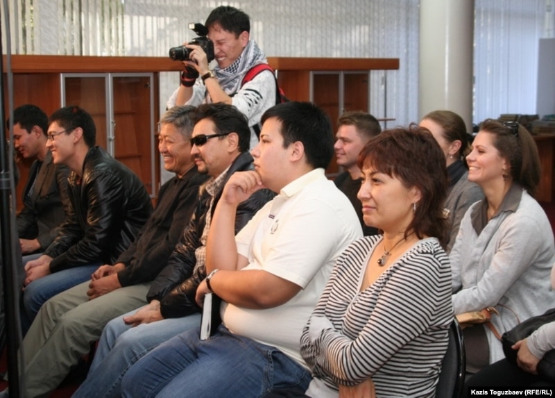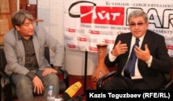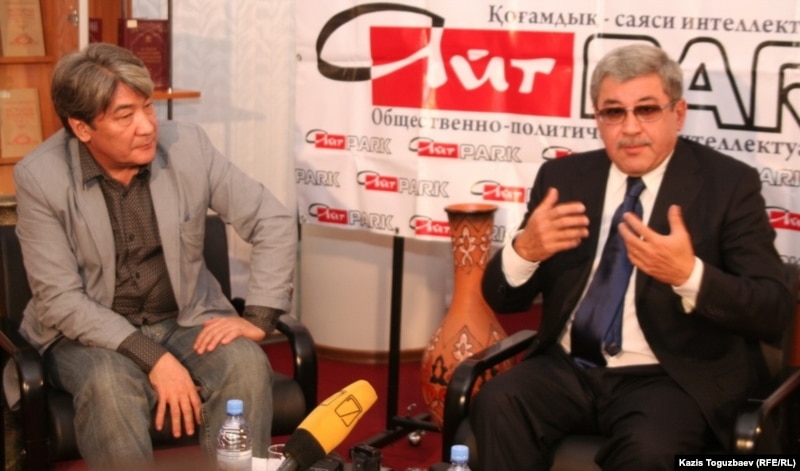 Депутат парламента Гани Касымов (справа) на заседании дискуссионного клуба "Айт-Парк", слева - модератор клуба Нурлан Еримбетов. Алматы, 12 октября 2010 года.