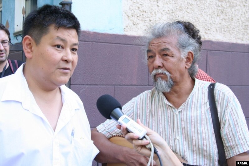 Художник Канат Ибрагимов (слева), участник группы «Кызыл трактор» Молдакул Нарымбетов (справа). Алматы, 24 августа 2009 года.