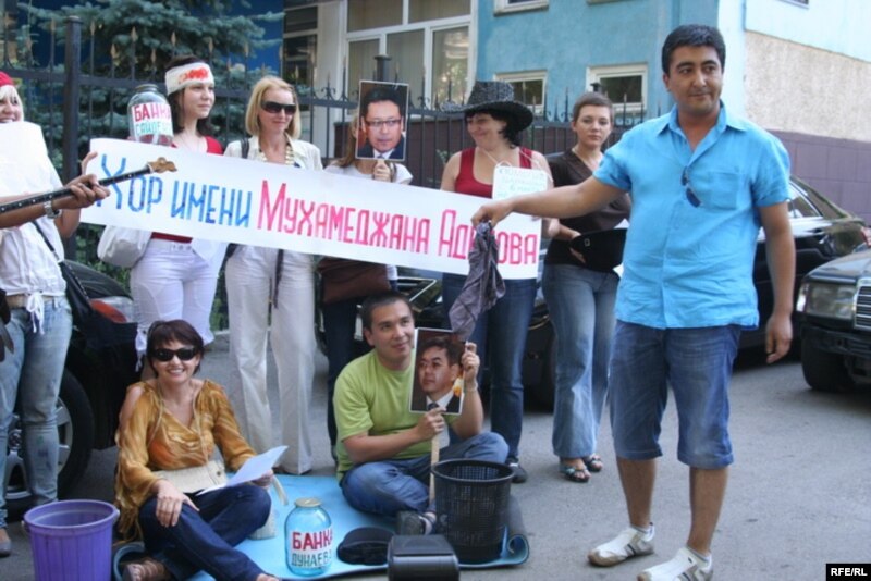 На вопрос корреспондента нашего радио Азаттык о том, что же привело журналистов газеты «Республика» на эту акцию, заместитель главного редактора этого издания Оксана Макушина ответила, что нынешний БТА банк объединил их с Канатом Ибрагимовым: