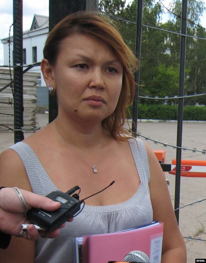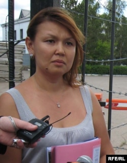 Супруга арестованного бывшего президента компании «Казатомпром» Джамиля Джакишева дает интервью перед входом в следственный изолятор КНБ. Астана, 4 июня 2009 года.