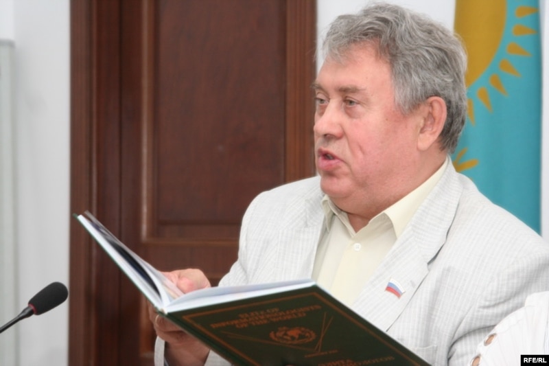 Геннадий Коренчук, президент Центрально-Азиатской Штаб-квартиры, выступает в защиту Кажимкана Масимова, отца премьер-министра Карима Масимова. Алматы, 18 июня 2009 года.