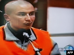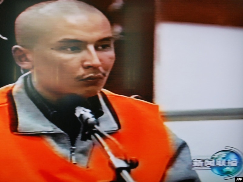 Кадр телепередачи китайской компании от 12 октября 2009 года показывает одного из шести подсудимых на суде по делу о межнациональных волнениях в Урумчи.