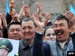 Сторонники оппозиции на митинге с критикой правительства. Бишкек, 17 марта 2010 года.