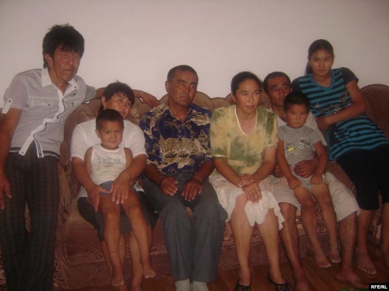 Семья Уркешбаевых: слева направо – Нуржан, его тётя Нургайша с племянником, отец Жанбырбай, мать Базаргуль, дядя Нурлан, младший брат Талант и сестра Асель.