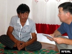 Нуржан беседует с репортером радио Азаттык. Cело Мукур Кызылкогинского района Атырауской области. 17 июля 2009 года.