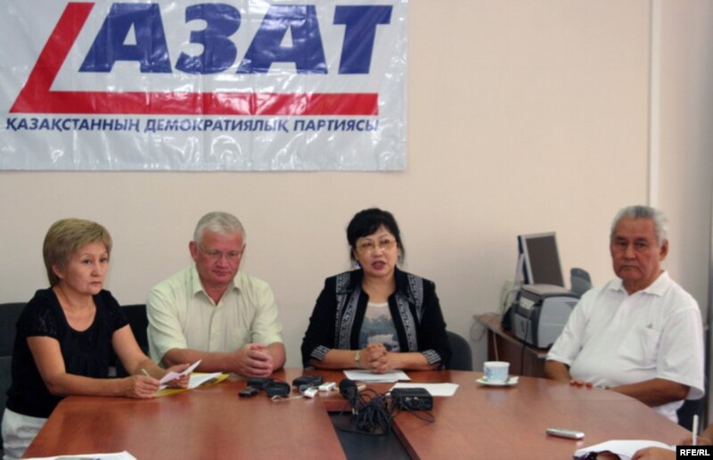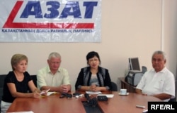 Участники штаба в защиту Рамазана Есергепова: его жена Раушан Есергепова, заместитель председателя "Азата" Петр Своик, президент фонда "Журналисты в беде" Розлана Таукина, судья Верховного суда в отставке Утеген Ихсанов. Алматы, 19 августа 2009 года.