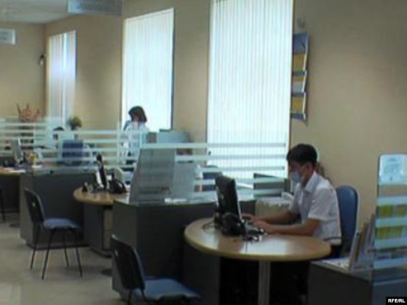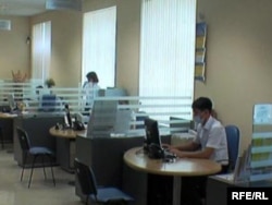 В операционном зале отделения Казкоммерцбанка в Петропавловске. 6 августа 2009 года.