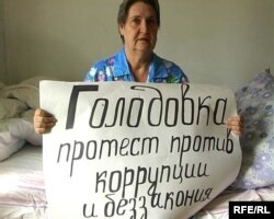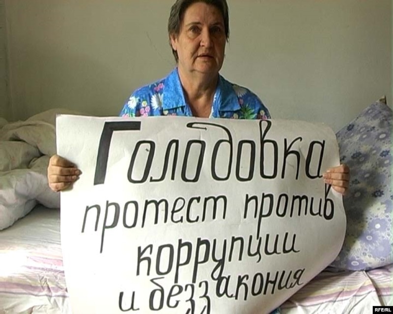 Любовь Митрофанова объявила голодовку в знак протеста против ареста ее сына. Талдыкорган, 17 сентября 2008 года.