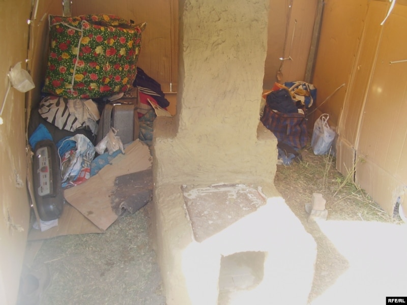 Некоторые узбекские беженцы живут в таких самодельных укрытиях вблизи Алматы. Сентябрь 2008 года.