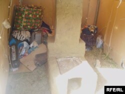 Вот так выглядит убежище некоторых узбекских беженцев вблизи Алматы. Укрытие сделано из картона, внутри - простейшая печка. Сентябрь 2008 года.