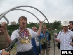 Владимир Гашута, автор 14 рекордов по акробатике. Село Акжар, Карасайский район Алматинской области. 11 июня 2009 года.