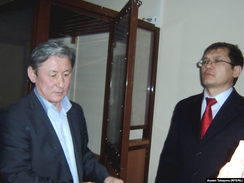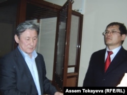Жаксылык Кулекеев и его адвокат Салимжан Мусин в зале суда. Астана, 7 ноября 2008 года.