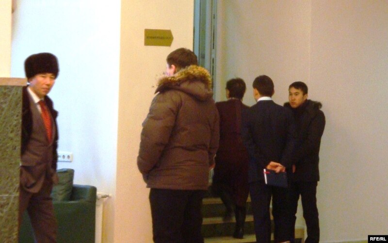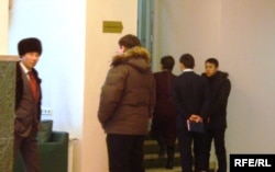 Жители города Атырау не могут попасть в конференц-зал, где идет отчет областного акима Бергея Рыскалиева. Атырау, 12 февраля 2010 года.