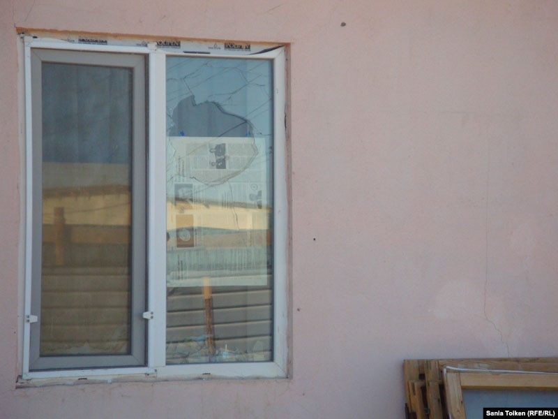 Окно, разбитое пулей, в доме Сергея Ли, погибшего при задержании по подозрению в терроризме. Атырау, 31 августа 2011 года.